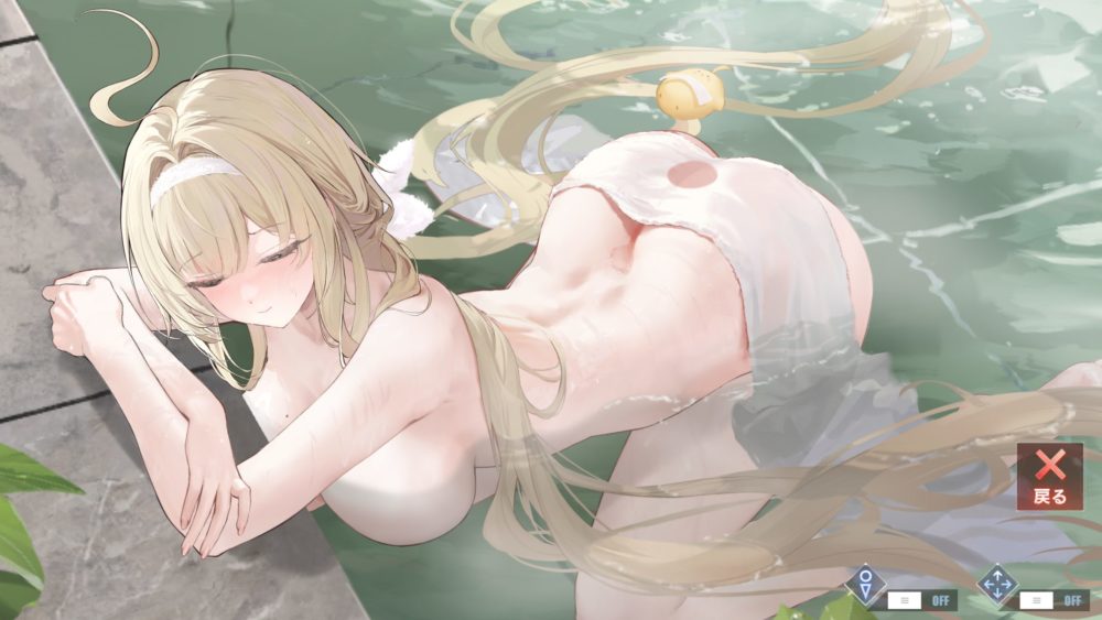腰とお尻の間に溜まっているお湯を見て、そこの飲み物を注いですすりたいと思った指揮官は少なくないはず。