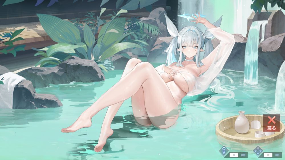 水着の結び目辺りをタッチで暗転して最初に戻ります。