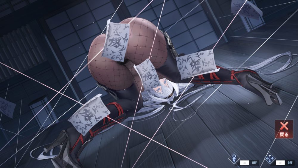 左太ももタッチで三目並べ表示非表示。右ふくらはぎタッチで網タイツの脱着と足先タッチでブーツのができます。
