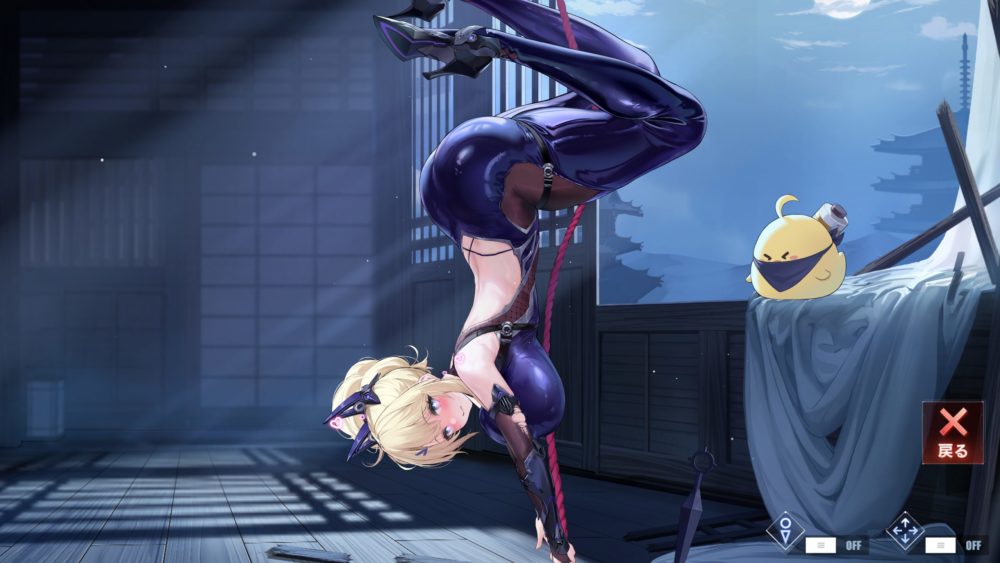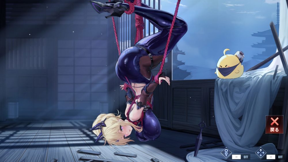 右下の縛られたグアムの絵をタッチすると逆さまで縛られるグアムが現れます。