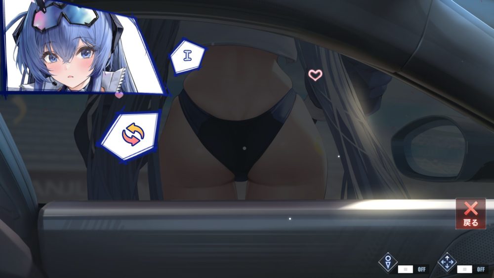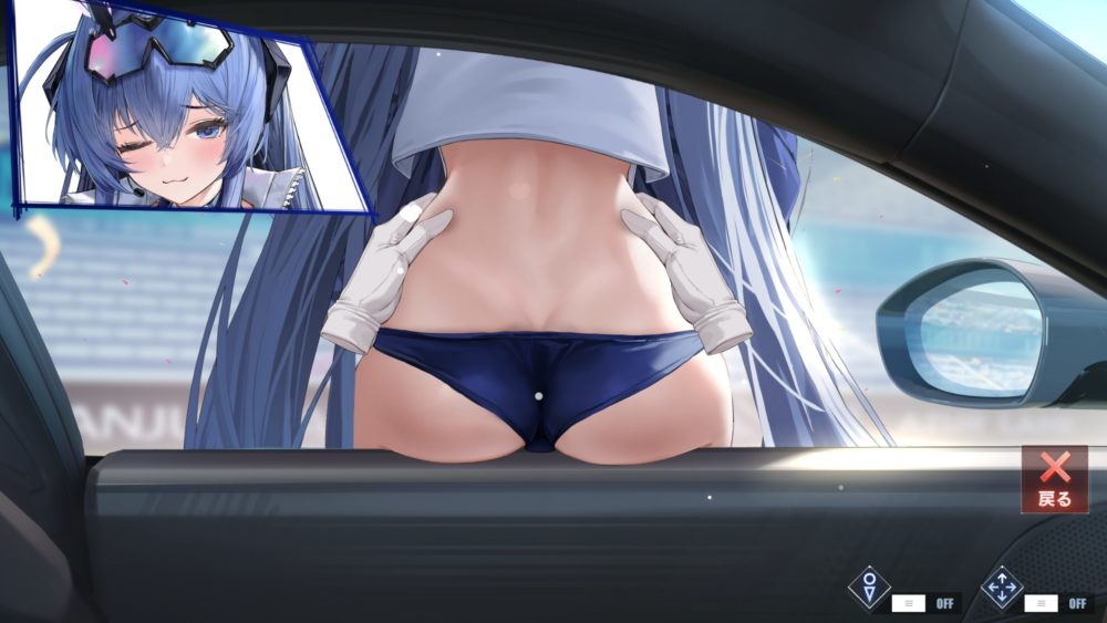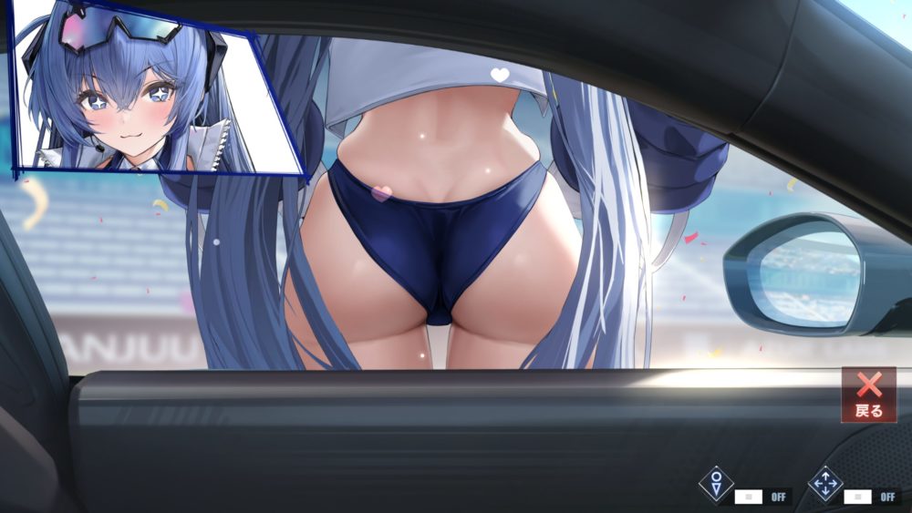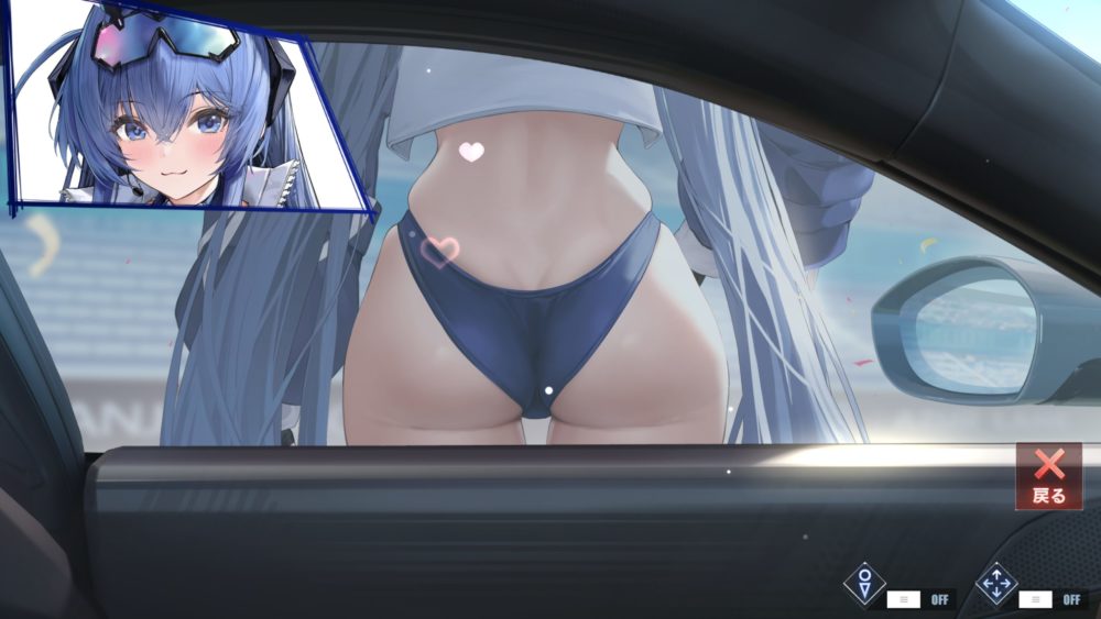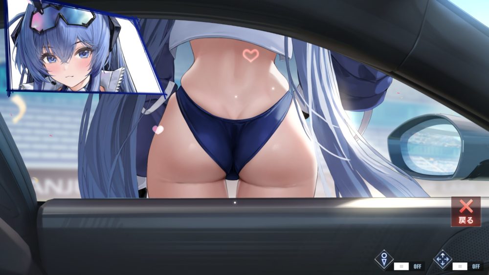 腸骨より下辺りをタッチするとボトムスをお尻に食い込ませます。余談ですが食い込ませた状態でお尻を揺らすギミックも発動可能。窓ガラスが閉まっている状態だと表示が少し変になります。