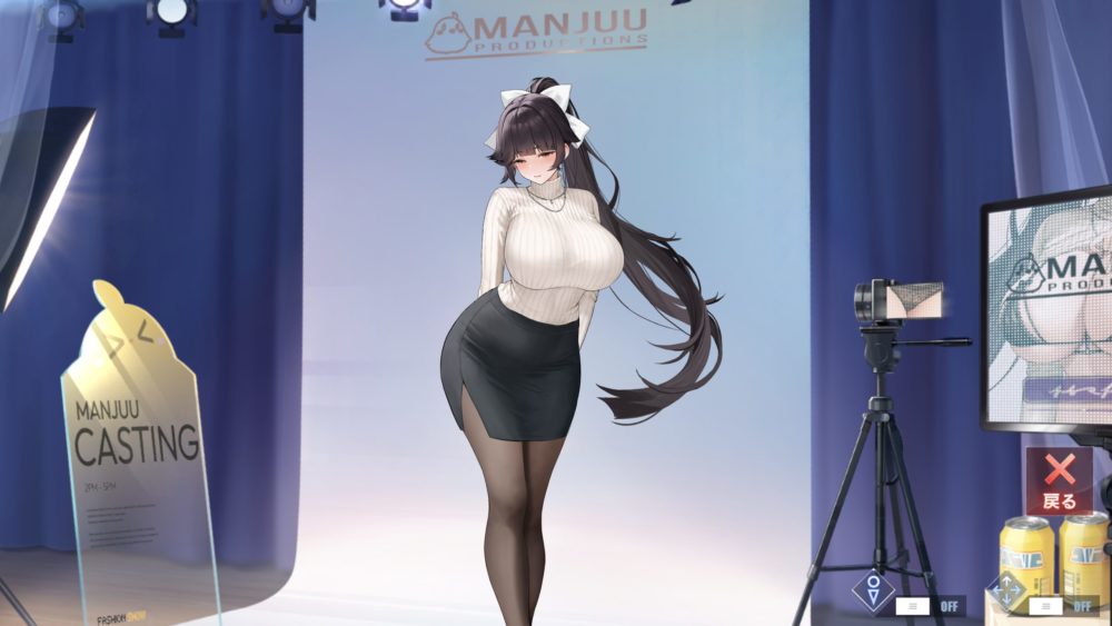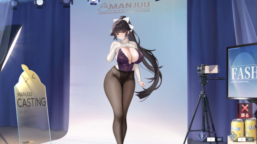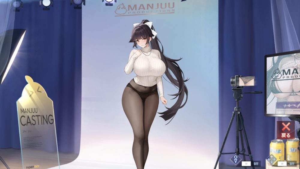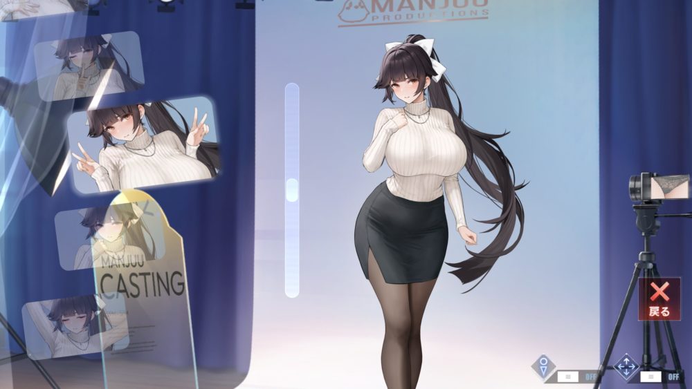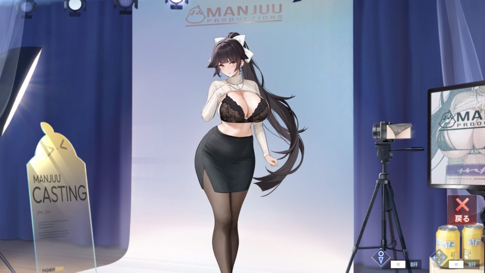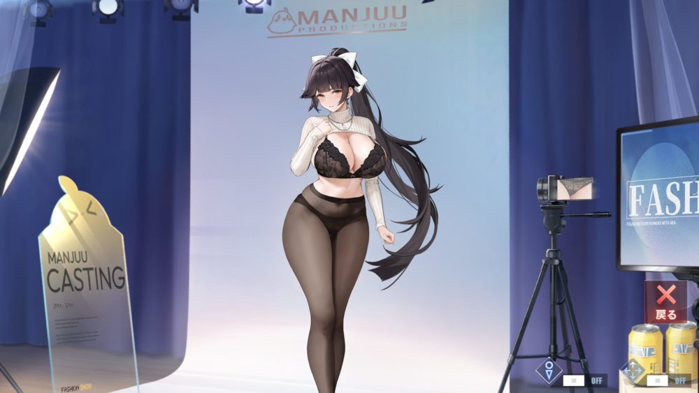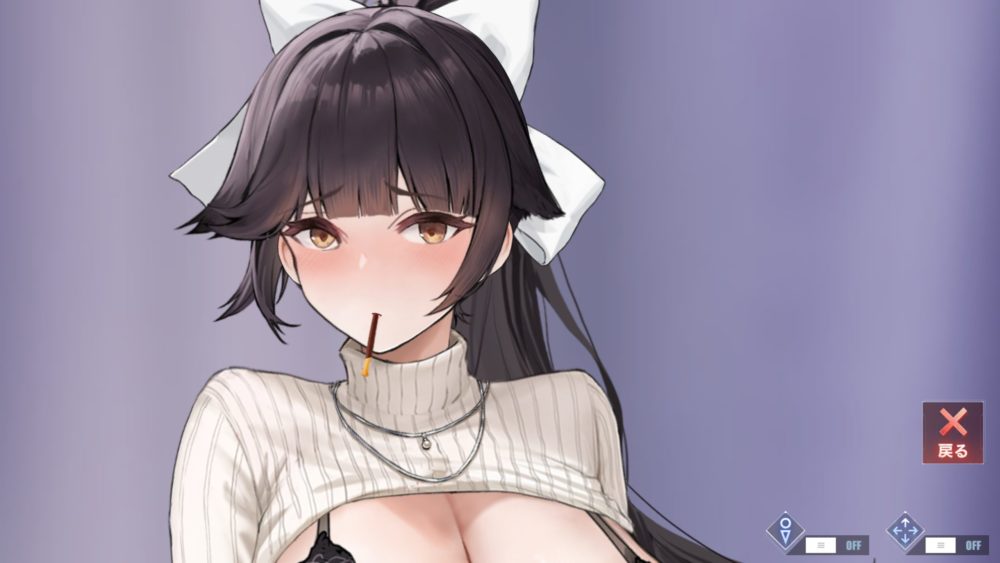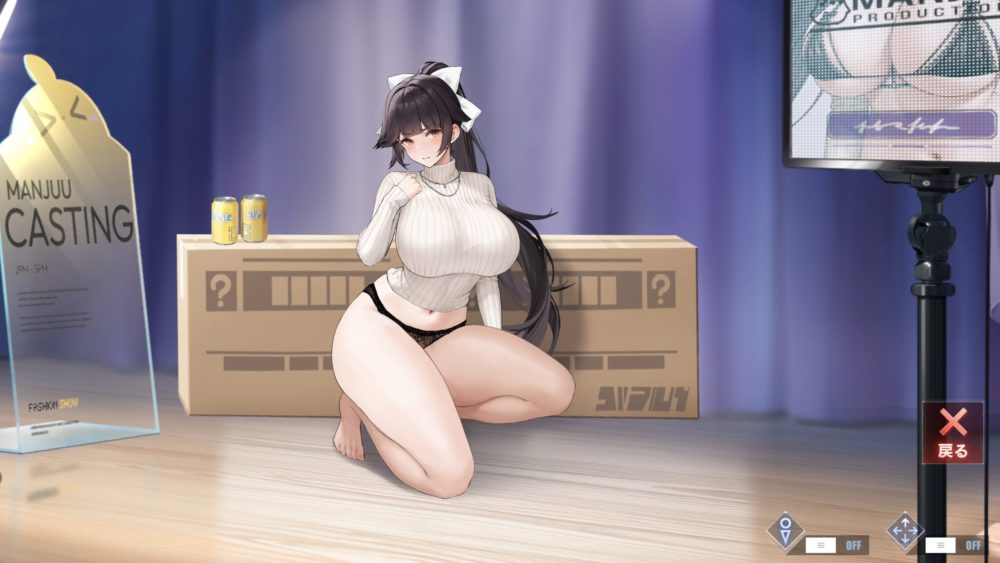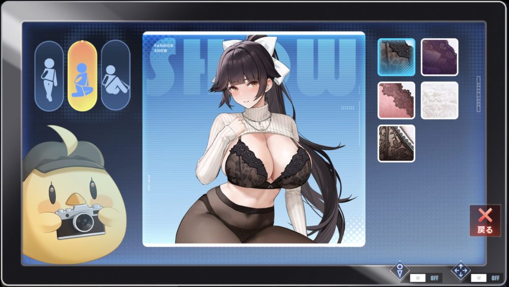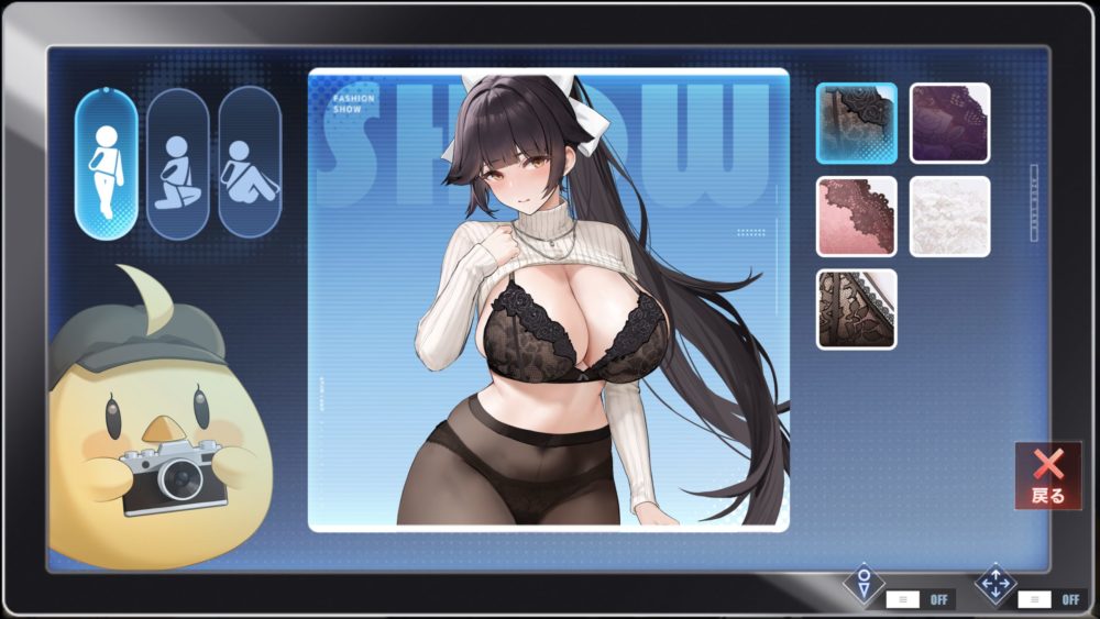 モニターをタッチすると上の画像になり、ポーズと下着の種類を選択できます。ひとまずデフォルト以外の下着を紹介。