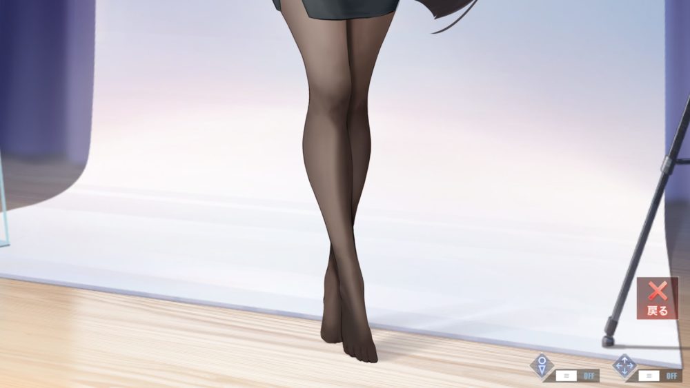 左右の膝上から膝下辺りをタッチするとパンティーストッキング着脱が可能。