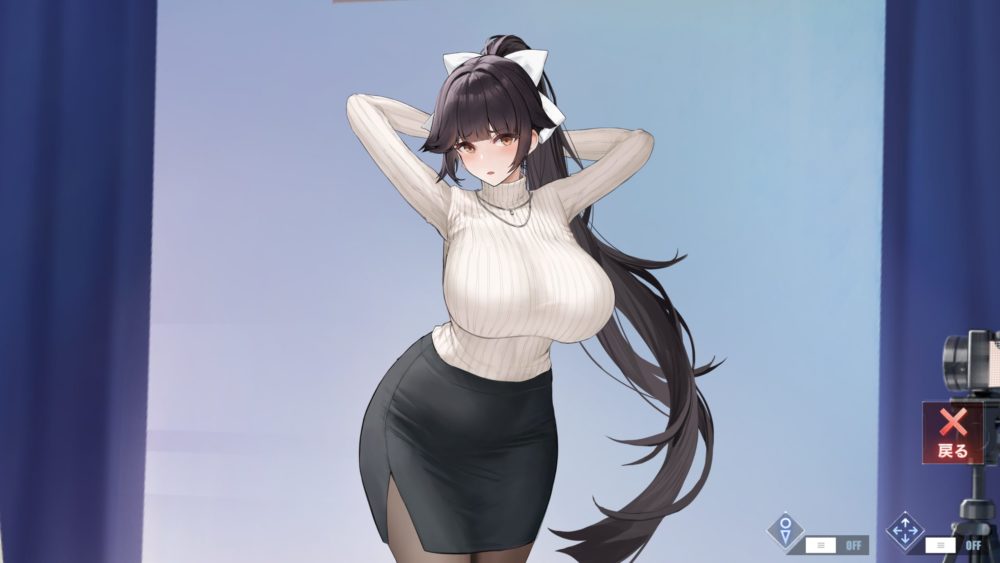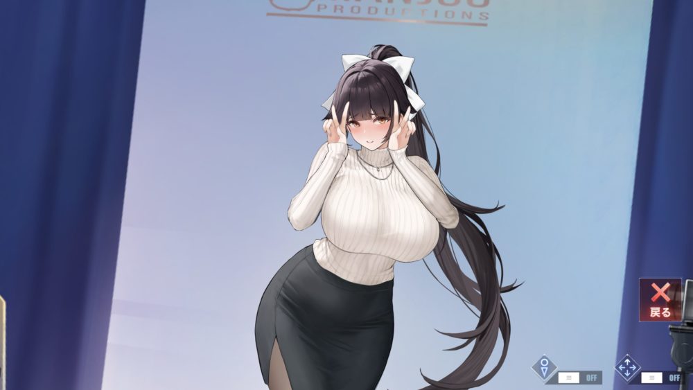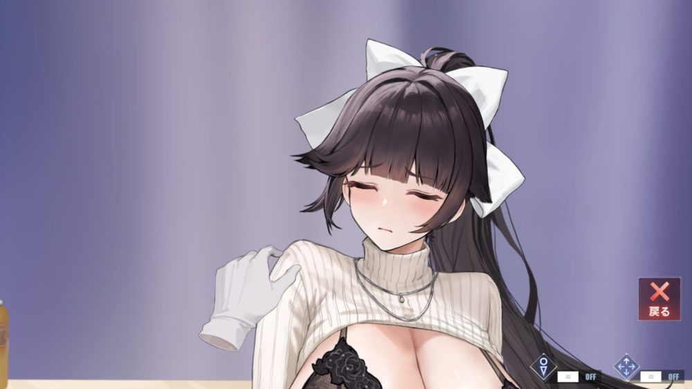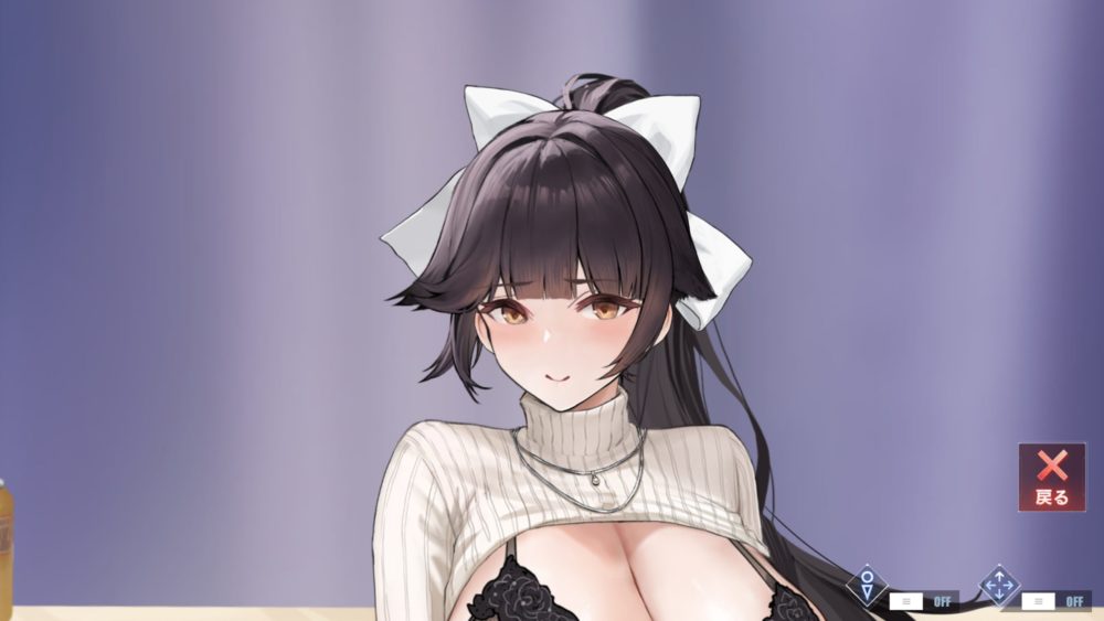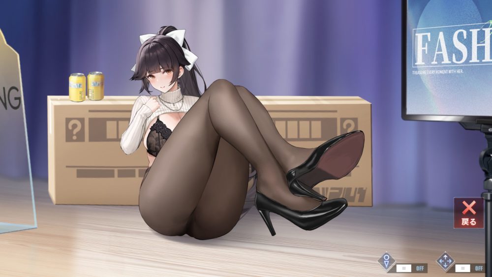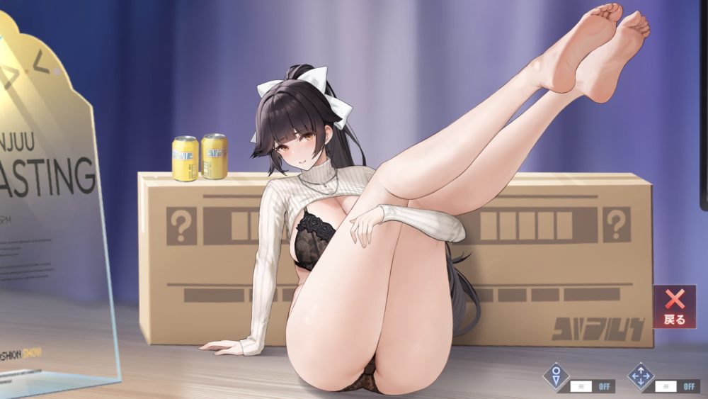 ポーズと下着を選んで高雄をタッチするとスタジオに戻ります。下着を変えても着脱ギミックはでき、先程紹介したアクリル板からのポーズ選択のギミックが可能です。