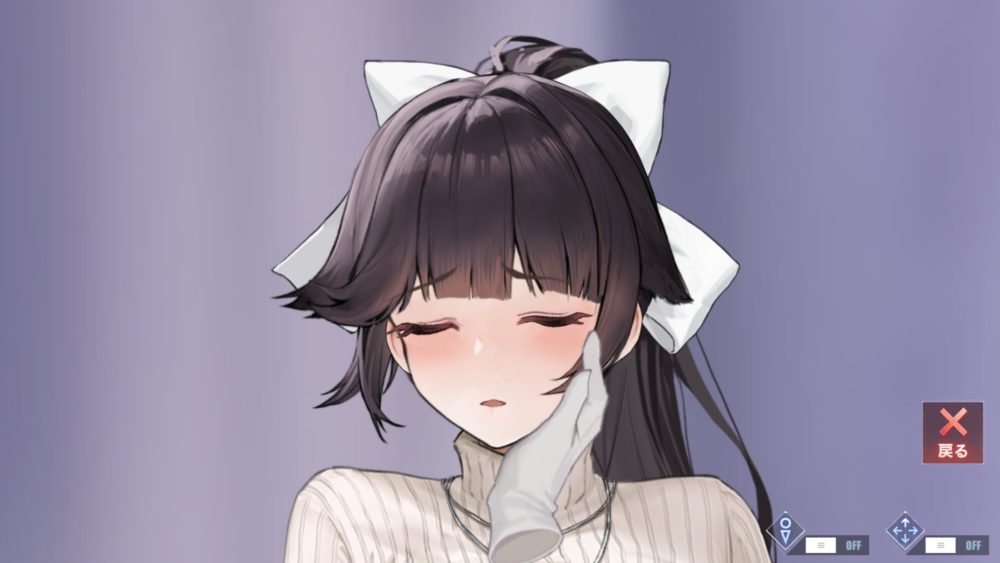再びタッチすると頭を撫でた後手を左頬に滑らせキスをします。その後は近づいた時の顔タッチの状態になります。