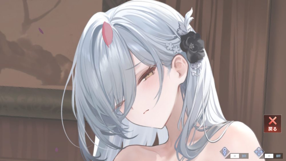 左胸をタッチして左にスライドで衣装まくるができます。