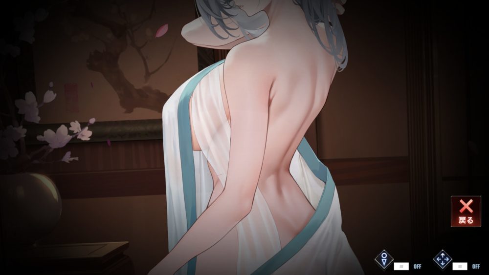 彰武の背中辺りをタッチすると指揮官の左手は背中を触り、そのまま下へ衣装を脱がせながら腰とお尻を触るという行為をしているのだと私は推測します。